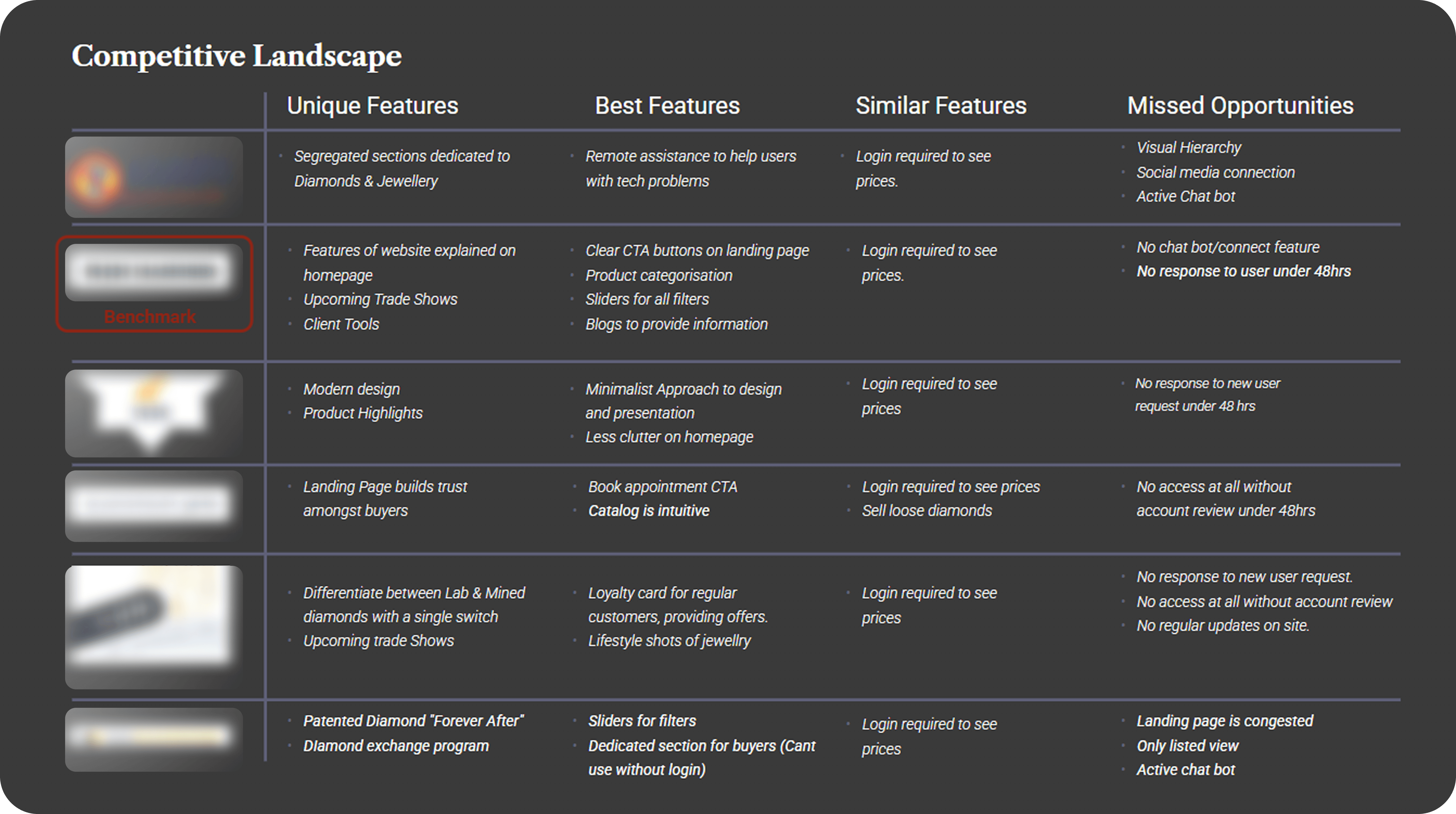 Competitive Analysis: Benchmarked against industry leaders to identify standard practices for jewelry e-commerce.