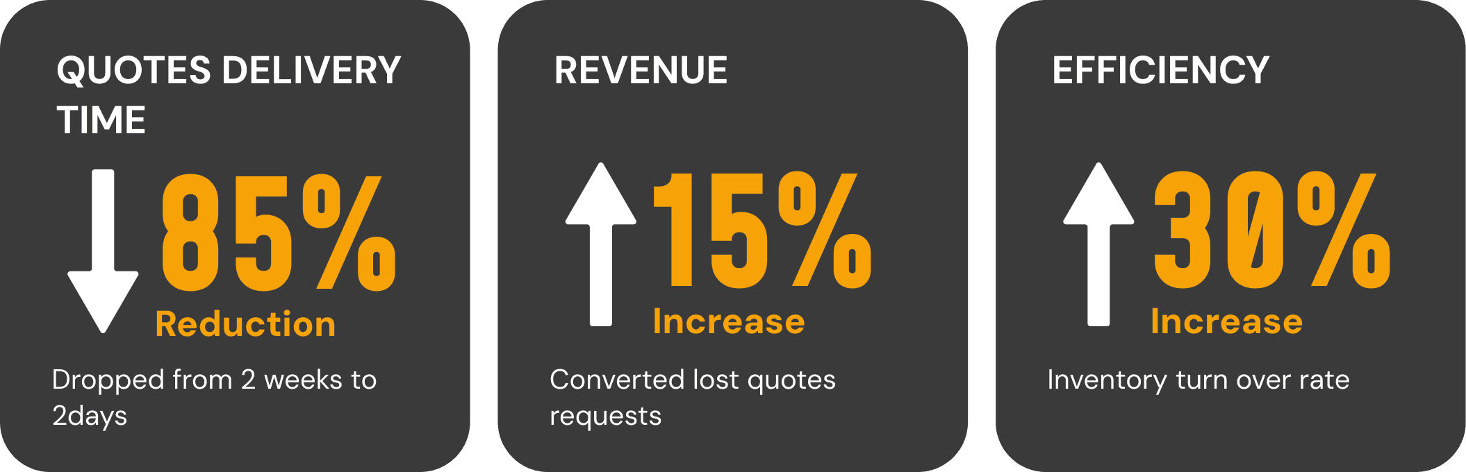 Revenue: Sales reps converted 25% of previously "lost" quote requests into successful orders because they could provide instant, accurate pricing.
