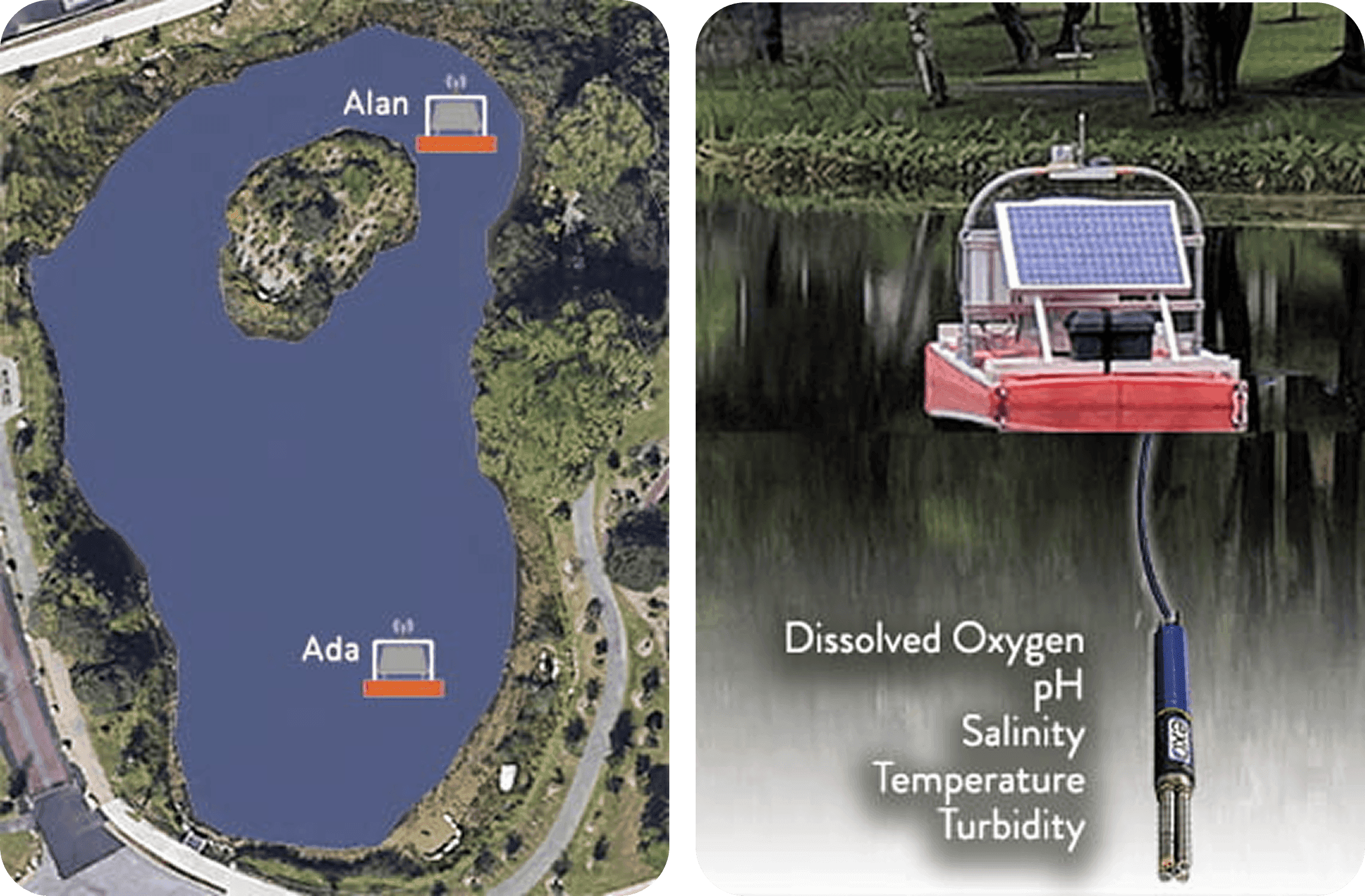 Meet ADA & Alan, monitoring stations in pond Chaotte on Pace University Pleasantville Campus