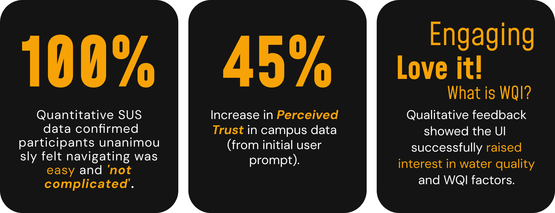 70% "Habit Formation" Rate: Seven out of ten surveyed students expressed interest in checking the kiosk regularly, successfully shifting water quality into a daily "weather-like" check-in.